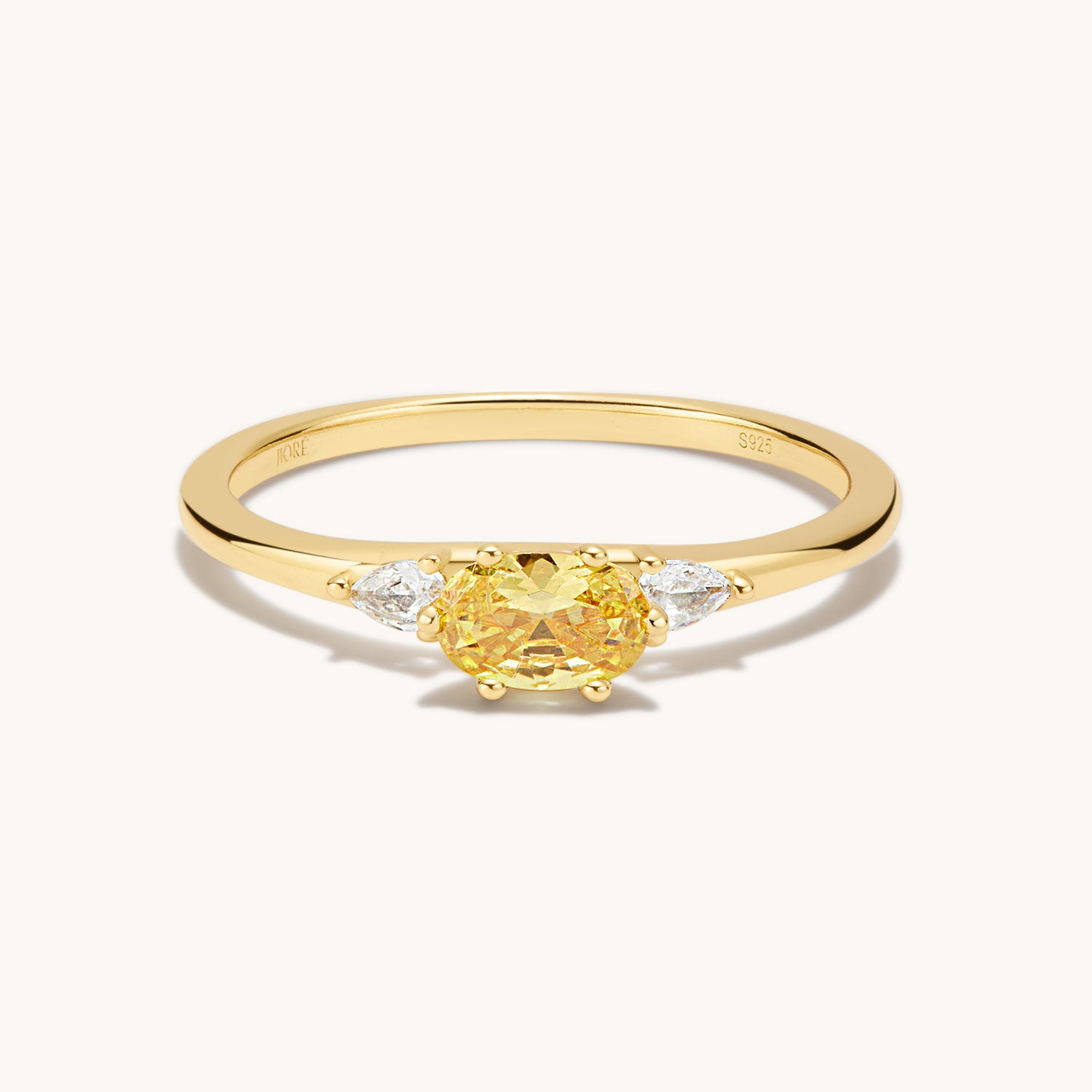 • Genuine 18K Gold Vermeil• Solid 925 Sterling Silver Base• Three Stone Solitaire with Accents • Fancy Vivid Yellow Diamond Simulant • Main Stone Width: 4.5mm• Total Weight: 1.8 grams• Finish: 18K Yellow Gold • Nickel-free & Hypoallergenic• Available in Sizes 5-9 Our Gold Vermeil jewelry is e...