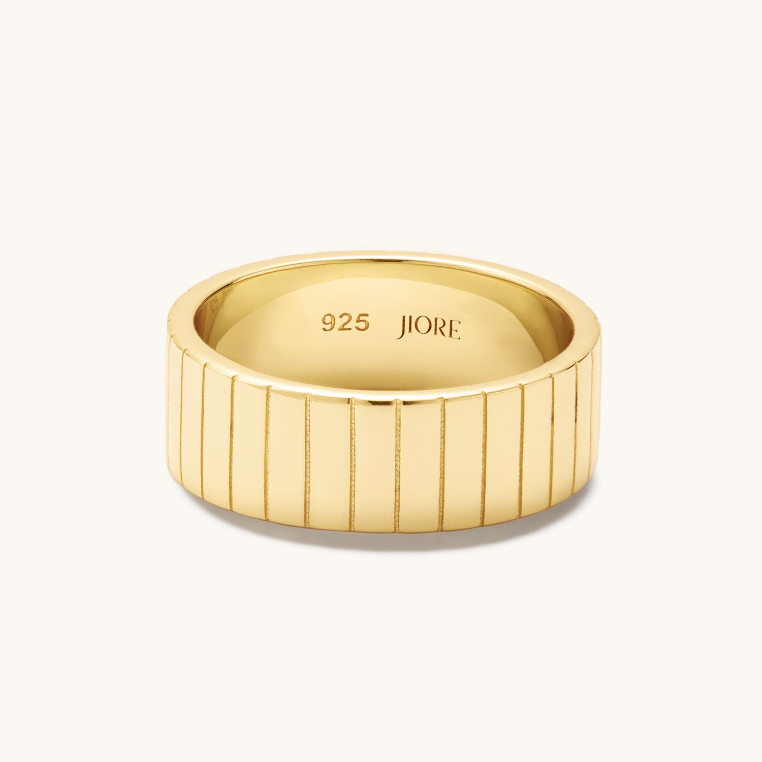 • Genuine 18K Gold Vermeil• Solid 925 Sterling Silver Base• Band Width: 7mm• Total Weight: 6.5 grams• Finish: 18K Yellow Gold • Nickel-free & Hypoallergenic• Available in Sizes 5-9 Our Gold Vermeil jewelry is expertly crafted with an extra thick layer of genuine 18K Gold over a solid 925 Ster...