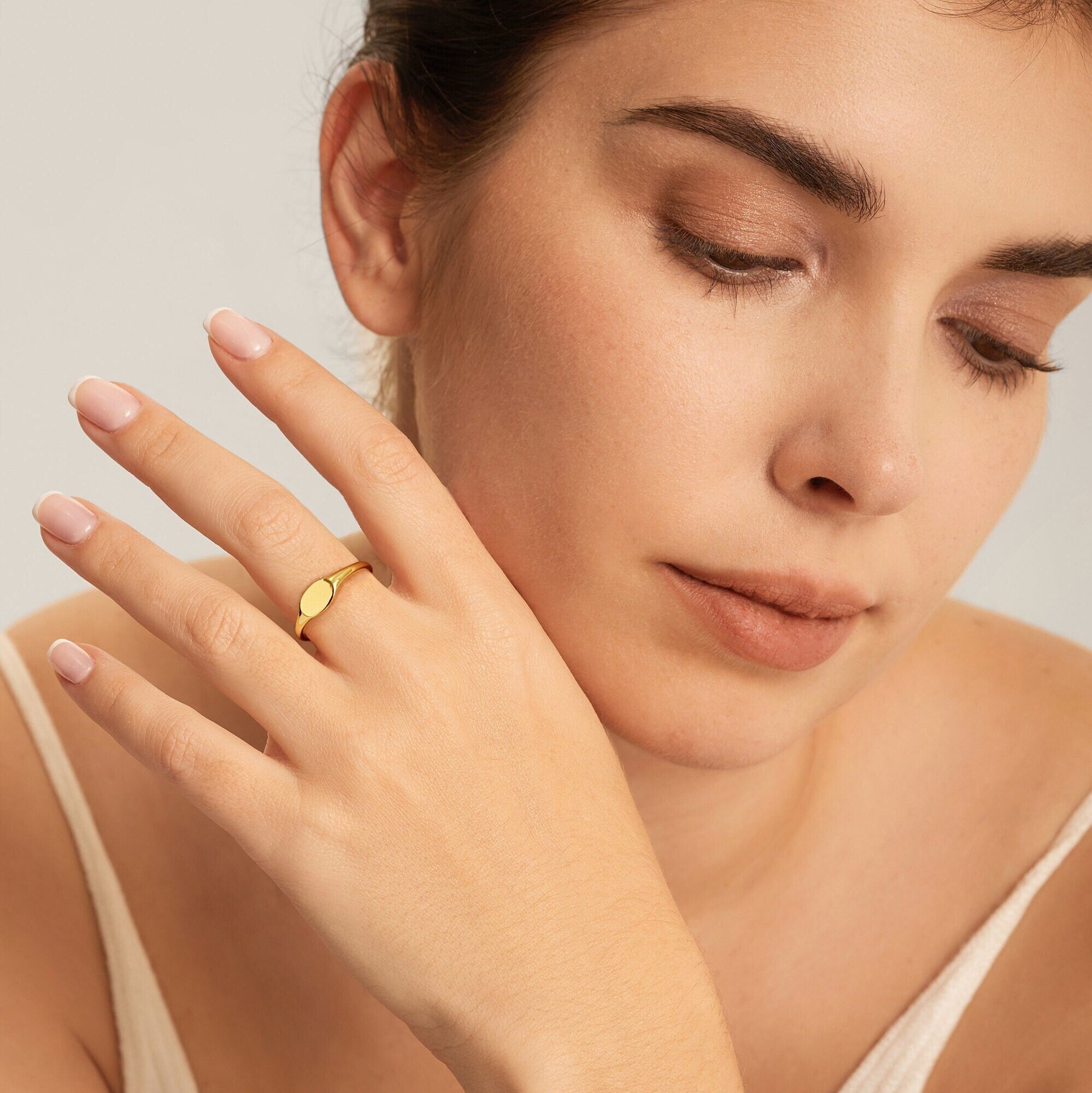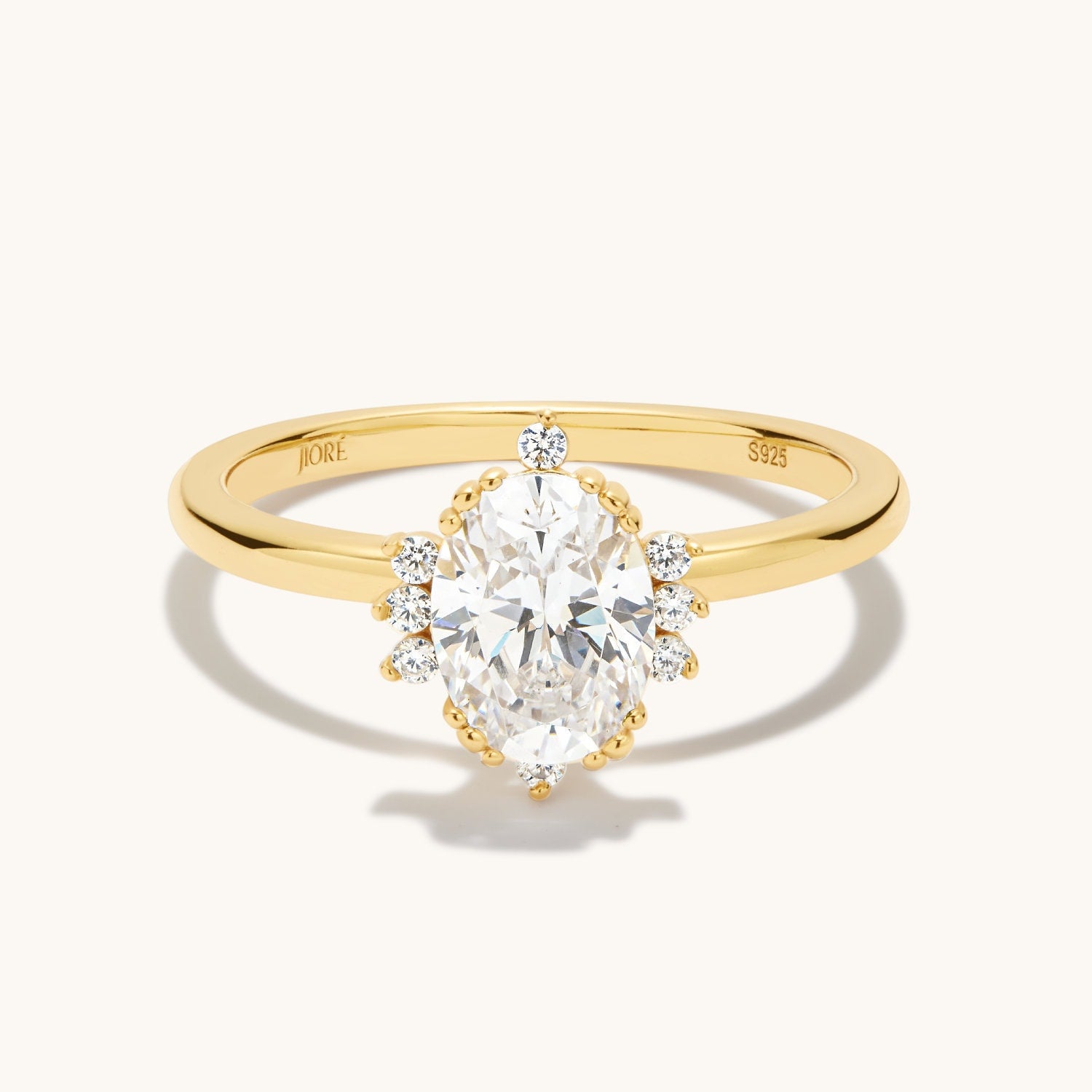 • Genuine 18K Gold Vermeil• Solid 925 Sterling Silver Base• Brilliant Oval Cut Diamond Simulant • Main Stone Measurement: 8mm x 6mm• Total Weight: 2.7 grams• Finish: 18K Yellow Gold • Nickel-free & Hypoallergenic• Available in Sizes 5-9 Our Gold Vermeil jewelry is expertly crafted with an ext...
