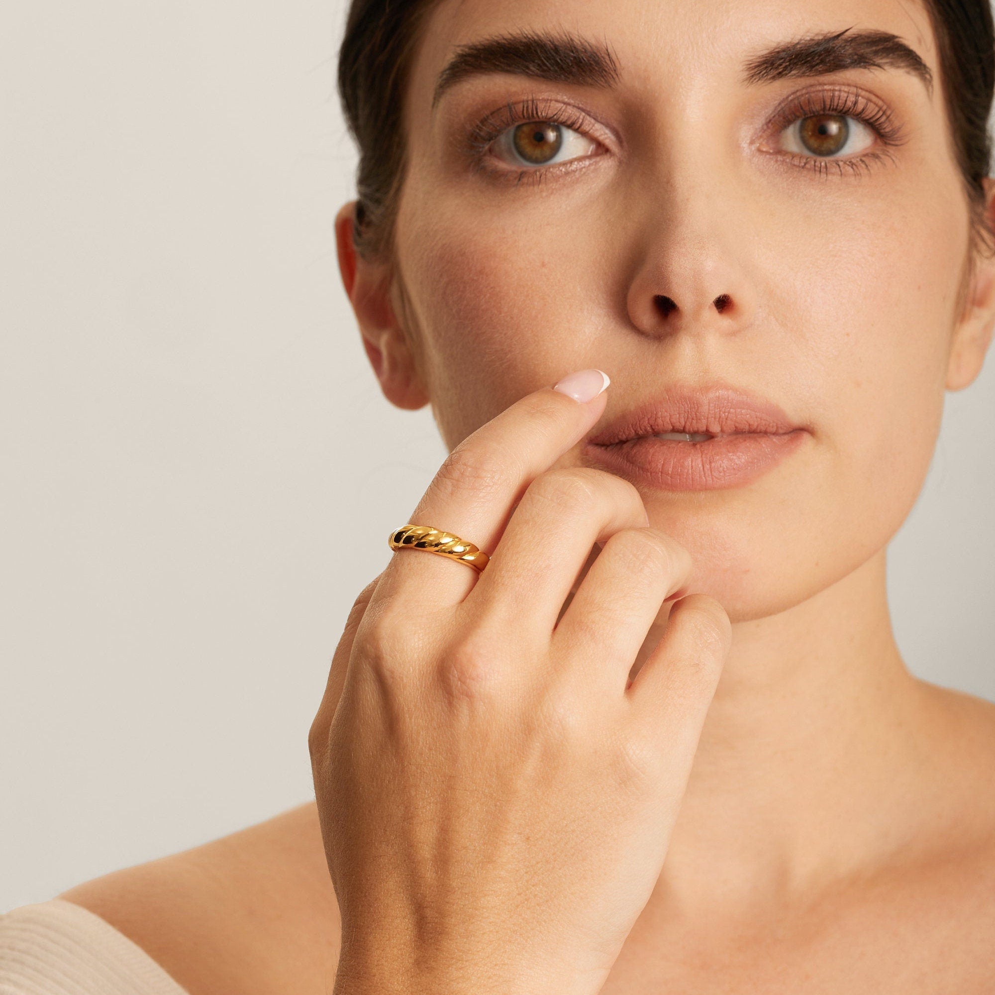 Croissant Dome Gold Vermeil Ring: Twisted Band